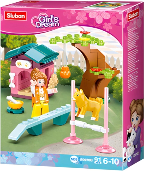 Byggesættet SLUBAN GIRLS DREAM træningsplads for hunde giver masser af sjov og læring for børn fra 6 år. Med en bevægelig minifigur og tematiske elementer fra træningspladsen kan små byggere skabe egne historier og træningsbaner til hunde. Den kvalitetsrige ABS-plast sikrer lang holdbarhed og sikker leg.