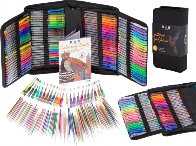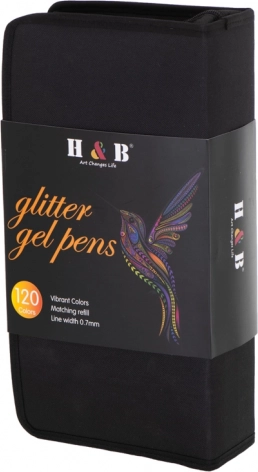 I pakken finder du en blanding af fluorescerende, metalliske, glitrende og ombre gelpenne. Når en yndlingsfarve løber tør, skifter du blot patronen – der er 120 stk. i sættet, så kreativiteten aldrig går i stå. Der medfølger også et farvelægningshæfte med 16 motiver til både børn og voksne, ideelt til træning af finmotorik og antistress-afslapning.