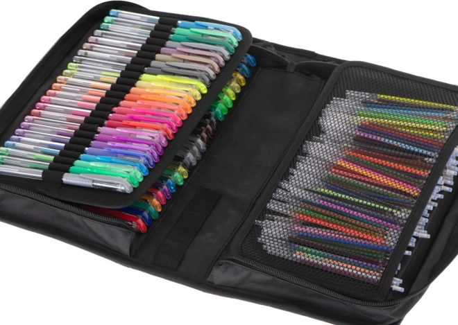 Det store sæt gelpenne giver uendelige muligheder for at skabe. Takket være de levende og farveægte farver bliver dine noter og illustrationer altid tydelige og skarpe. Det organiserede tekstiletui med lynlås holder alt pænt samlet derhjemme, i skolen og på farten.