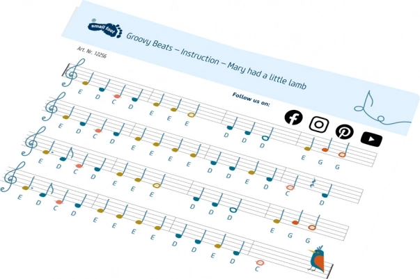 De medfølgende klistermærker og noder hjælper børn med hurtigt at forstå tangenternes placering og spille de første melodier med sikkerhed og glæde.