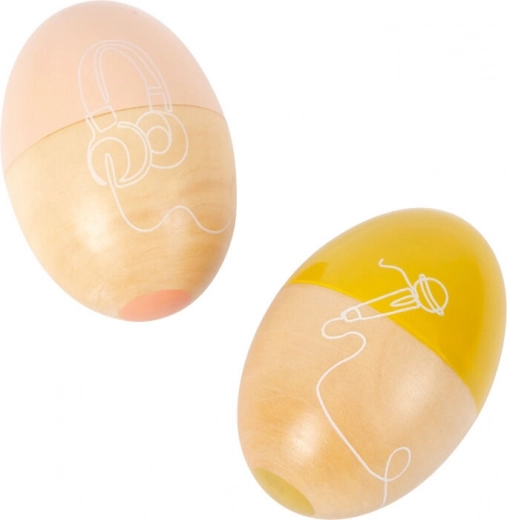 Æggene kombinerer massivt naturtræ med moderne farver og en slidstærk overfladebehandling. De er velegnede til både individuel og gruppeleg, understøtter rytmefornemmelse, hånd–øje-koordination og finmotorik. Deres alsidighed gør dem oplagte i hjemmet, børnehaver og musikhold.