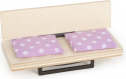 - Dukkehus, 8 stk. møbler, tekstiltilbehør (sengetøj, puder)