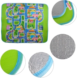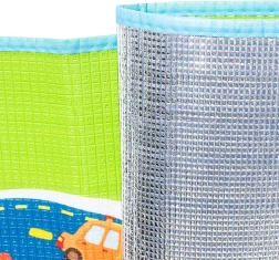 Underlaget isolerer mod kulde og dæmper fald. Dit barn kan lege sikkert på gulvet. Et perfekt tilbehør til børneværelset, som gør enhver leg mere spændende. Undersiden af underlaget har et lag varmeisolerende folie, så du kan tage det med i haven eller på stranden.