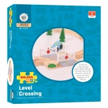 Fremstillet af kvalitetsmaterialer fra ansvarlige, naturlige kilder støtter dette sæt børns fantasi, fingerfærdighed og koordination. Jernbaneoverskæringen har vippebomme, som passer perfekt til Bigjigs Rail-baner, men kan også kombineres med alle andre træjernbaner på markedet.