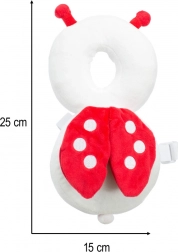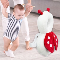 Den runde pude bag hovedet dæmper fald på ryggen og beskytter det følsomme nakkeområde, mens barnet lærer at gå.