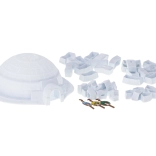 Interaktivt spillesæt med hvid iglo fremstillet af sammenkoblede plastblokke muliggør fantasifuld opbygning og kreativ leg.