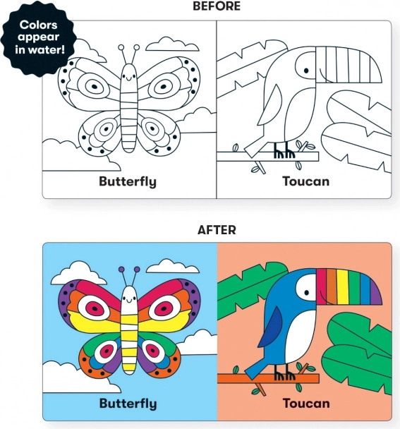 Opdag den unikke vandbog, der gør badet til en yndlingsrutine. Dyp den i vand, og illustrationerne folder sig ud i levende nuancer på få øjeblikke. Mål 15 × 15 × 3 cm og det bløde materiale er ideelt til små barnehænder.