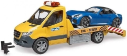 BRUDER bugseringsbilen baseret på MB Sprinter imponerer med detaljeret udførelse og rige funktioner. Børn vil elske blålyset med lys og lyd, den realistiske rampe med udtrækkelige skinner og stopkiler samt åbnbare døre og sidelommer/skabe. Med følger en sports-cabriolet med aftageligt tag og udskiftelige hjul.