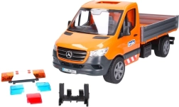 Detaljeret model af Mercedes‑Benz Sprinter fra BRUDER til vejvedligehold bringer lys- og lydeffekter, tipbar lad med nedfældelige sider og masser af tilbehør til realistisk leg. Inkluderer vejarbejder‑figur, ramper, skilte og kegler. Kvalitets ABS‑plast, målestok 1:16, fremstillet i Tyskland.