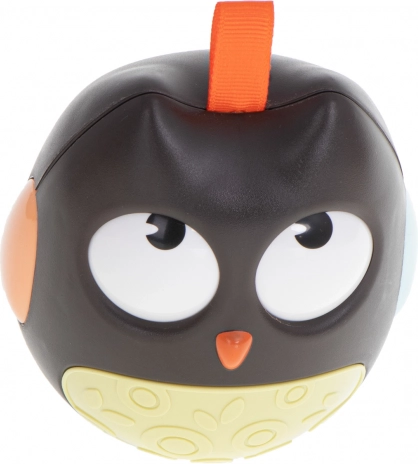 Kontrasterende detaljer, store bevægelige øjne og den blide raslen fra de indvendige klokker fanger naturligt opmærksomheden. Forskellige overfladestrukturer og den praktiske rem på toppen udvikler finmotorik og taktil sansning.