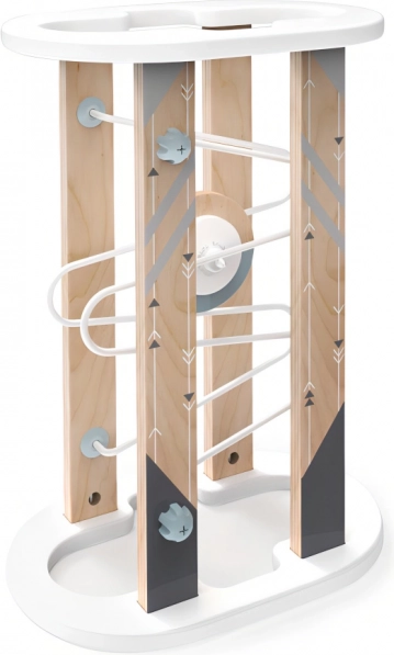 Drej banen som et timeglas og oplev endeløs kørsel! Lad børn udforske den fascinerende virkning af magnetisme, som forhindrer den livlige disk i at falde ud! Legetøjets konstruktion bruger metal- og plastforbindelser, som gør det nemt at samle og skille banen ad efter behov og lægge den væk. Takket være de robuste grunddele af holdbart krydsfiner er legetøjet solidt, stabilt og slidstærkt. Med sine skandinaviske og naturlige nuancer passer det stilfuldt ind på børneværelset. Leveres med en detaljeret samlevejledning. Hovedegenskaber: bane med skive, nem at samle og skille ad, robust og holdbar træudførelse