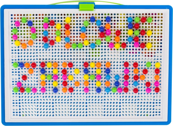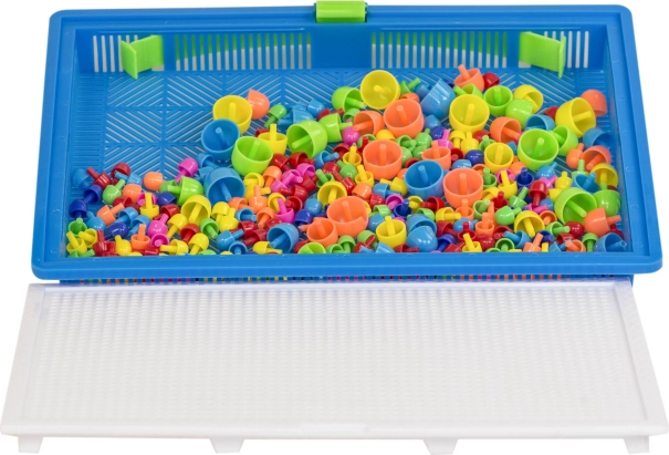 Dette legetøj er elsket af generationer af børn og huskes med nostalgi af voksne. Den enkle konstruktion består af farverige plastsvampe i forskellige størrelser og en perforeret plade til at indsætte dem i. Alt er opbevaret i en praktisk kuffert, så dit barn kan tage sit yndlingslegetøj med hvor som helst.