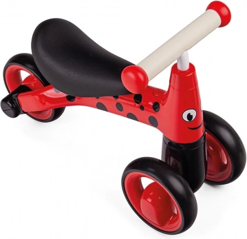 Kørekomforten sikres af bløde greb for et sikkert greb og stille, glatte hjul for jævn bevægelse på både gulv og fortov. Det legende mariehønemotiv motiverer til bevægelse og forlænger tiden brugt på aktiv leg.
