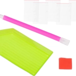 Sættet indeholder alt, hvad du behøver for at lave et strålende kunstværk: billede, farverige sten, applikator, tørt lim og bakke.