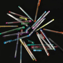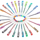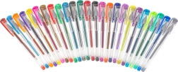 Dette alsidige sæt gelpenne er ideelt til børn, studerende og voksne. Det indeholder 25 nøje udvalgte dele: 12 glitrende til effektfuld pynt, 7 metalliske til stilfulde accenter, 3 fluorescerende til tydelig fremhævning og 3 klassiske farver (sort, blå, rød) til hverdagsskrivning. Det transparente hylster gør det let at se blækniveauet, og den fine spids sikrer præcise linjer.