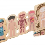 Trælagdelt puslespil af menneskekroppen er en lærerig samling, der hjælper børn med at opdage menneskekroppens hemmeligheder. Hvert puslespilslag viser forskellige systemer som knogler, muskler og organer, hvilket giver en sjov og interaktiv måde at lære på.