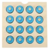 Træbaseret hukommelsesspil er et fremragende valg, der kombinerer sjov og læring. Spillet har enkle regler, som selv små børn let forstår. Vælg et kort, husk placeringen af de forskellige former, og dæk dem med de blå låg. Vend derefter to ad gangen og find de matchende par!