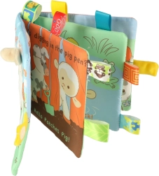 Bogen består af fire stofark, der indeholder en kort historie på engelsk, hvilket hjælper børn med at stifte bekendtskab med fremmedsprog fra en tidlig alder.