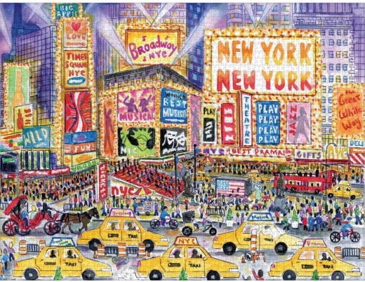 Dette storformatpuslespil bringer stemningen af lys, plakater og mylderet på New Yorks Broadway direkte hjem til dig. Takket være Michael Storrings’ illustration træder farver og detaljer flot frem på den store flade, og den præcise stansning sikrer en behagelig, jævn samling uden sprækker.