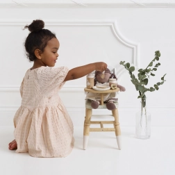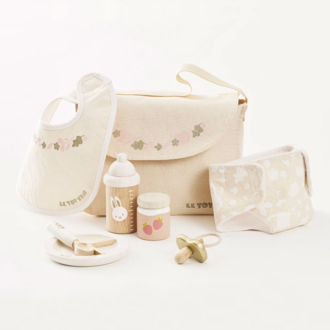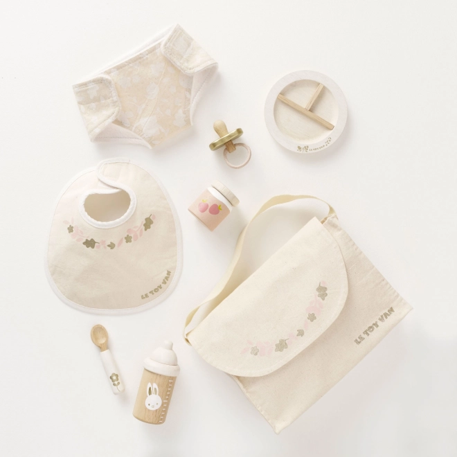 Omsorg for dukker og tøjdyr har aldrig været så sjovt og inspirerende. Le Toy Van plejesæt tilbyder komplet udstyr til små plejere. Indeholder tekstil skifttaske med dekorativt mønster, sut, hagesmæk, ble, tallerken, ske, snacks og flaske. Hvert stykke er fremstillet med fokus på bæredygtighed og kvalitet for at modstå mange timers leg.