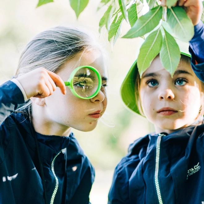 Luppen og den gennemsigtige beholder med låg lader børn udforske selv de mindste detaljer på helt tæt hold – skånsomt for naturen.