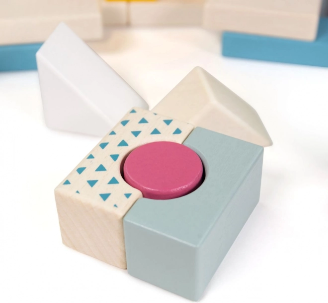 Diskrete og mere iøjnefaldende nuancer samt enkle mønstre understøtter genkendelse af farver og former, udvikling af logik og rumlig forestillingsevne ved de første byggeprojekter.
