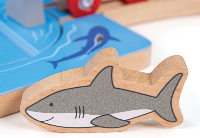 Hvirvel med hajer forvandler enhver trætojbane til en spændende havmission. Børn styrer den roterende sporsektion og beslutter, om toget sikkert passerer forbi hajfinnerne. Dette legeelement tilfører spænding, historier og aktiv involvering.