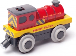 Dette røde elektriske lokomotiv giver din bane både kraft og tempo. Med en simpel kontakt sætter du det i gang, og de magnetiske koblinger lader dig tilføje vogne på få sekunder. Gummiringe på drivhjulene sikrer glidende kørsel i sving og over broer.