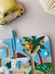 Den magnetiske labyrint fra Vilac tager børn med ind i en verden af Michelle Carlslunds fine illustrationer. Med en magnetisk pen kan børn hjælpe dyrene med at få deres kugler på plads. Denne legetøj er sjov og sikker takket være den magnetiske funktion.