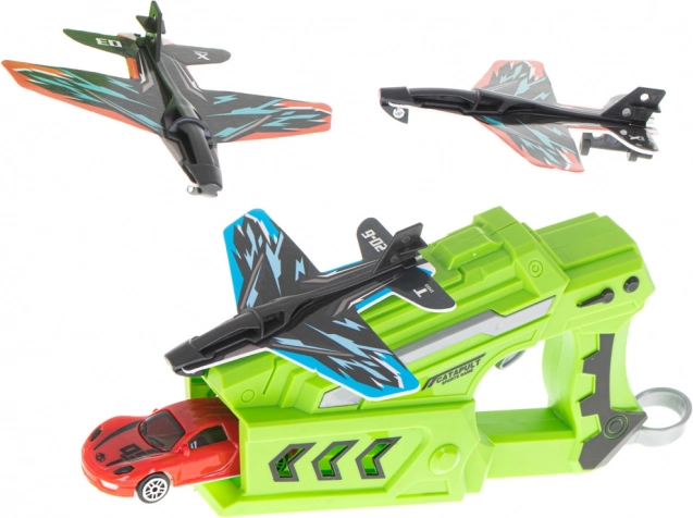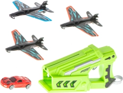 Sjovt 2-i-1 sæt til små piloter og racerkørere: en pistol med affyringsmekanisme, der sender både skumfly og en lille bil afsted. Nyd en hurtig start, lange glideflyvninger og actionfyldt kørsel på gulvet. Let konstruktion for nem betjening uden batterier, iøjnefaldende farver og udvikling af motorik, fantasi og konkurrenceånd.