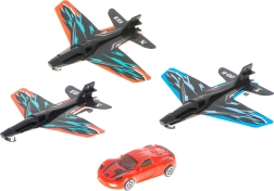 Sættet indeholder 3 fly til holdkonkurrencer og 1 lille bil til løb på gulvet. Det styrker fin- og grovmotorik, hånd-øje-koordination og kreativ leg, som effektivt trækker børn væk fra skærmene. De markante farver og det attraktive design fanger øjet med det samme – et ideelt gavevalg til små fans af flyvning og fart.