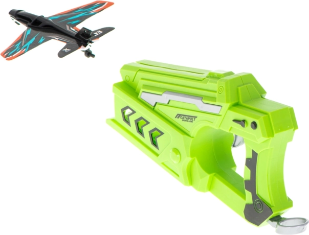 Denne alsidige affyringspistol giver dobbelt så meget sjov: send lette skumfly i luften, eller skyd den medfølgende lille bil afsted hen over gulvet. Det ergonomiske håndtag og den enkle vippe-/lademekanisme gør det nemt for børn at lade og affyre legetøjet – helt uden batterier og besværlig vedligeholdelse. Takket være den lave vægt flyver flyene virkelig langt og glider stabilt gennem luften.