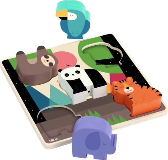 Lydpuslespillet Jungle er det ideelle legetøj til de mindste, som tager dem med ind i vildmarkens verden. Børn kan lære de enkelte brikker at kende ikke kun med synet, men også med hørelsen. Originale farver og venlige dyreansigter sikrer, at legetøjet bliver en iøjnefaldende attraktion på børneværelset.