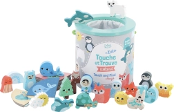 Vilac Føl og find Øen er ikke kun et spil, men frem for alt et eventyr til udvikling af dine børns følesans. Takket være individuel tilpasning af reglerne er det velegnet til børn fra 2 år og op. Sættet indeholder: