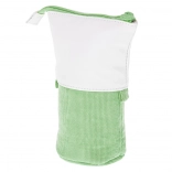 Praktisk skolepenal 2-i-1 i grøn, som med ét træk bliver til en bordorganizer. Tilbyder rigelig opbevaring af skriveartikler, holdbart tekstilmateriale og sikker lynlåslukning til daglig brug i skole, på universitetet og på kontoret.