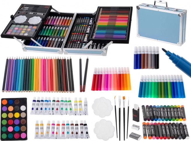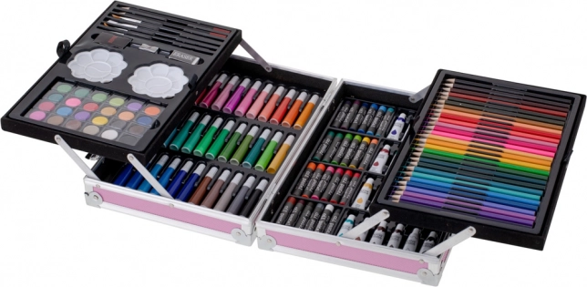 Alt, hvad du behøver til kreativt arbejde, samlet ét sted. Sættet kombinerer forskellige teknikker – tegning, farvelægning og maling. Med den rige farvepalette finder du nemt den præcise nuance og kan udtrykke din fantasi fuldt ud. Den bærbare kuffert med pålideligt håndtag og dobbelte låse gør det nemt at tage kunstmaterialerne med overalt.
