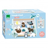 Dette trælegetøj med temaet vinterrige indeholder flere aktiviteter, som hjælper dit barn med at udvikle sine færdigheder:
