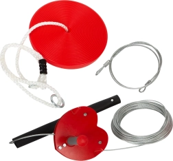 2-i-1 svævebanen giver både børn og voksne masser af sjov og bevægelse. Den robuste stålwire, kvalitetsløbekatten med ergonomiske håndtag og det delvist luftfyldte skivesæde udgør den perfekte kombination for en jævn og behagelig tur. Takket være gummianslaget er afslutningen blød og sikker.