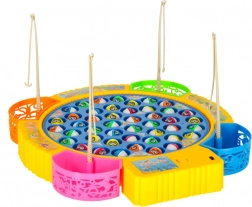 Sjovt familiespil om fiskeri med roterende platform og musik, som indeholder 45 fisk og 4 stænger til 1–4 spillere. Styrker reflekser, koncentration og finmotorik, har farvede, aftagelige bægre til fangsterne og lydeffekter. Drives af 3× AA batterier.