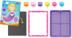 Sættet indeholder alt, hvad du skal bruge: en robust stikplade, en ramme for komfortabel samling og en opbevaringskurv, hvor du nemt kan lægge alle de 300 farverige knapper. Sættet er ideelt til kreativ leg derhjemme og som gave til små kunstnere.
