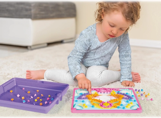 Quercetti knapmosaik giver børn fra 5 år en sjov og lærerig aktivitet, der udvikler tålmodighed, fantasi og præcision. Takket være de fortrykte kort med feer og andre eventyrfigurer er det intuitivt og motiverende at lægge mønstre.
