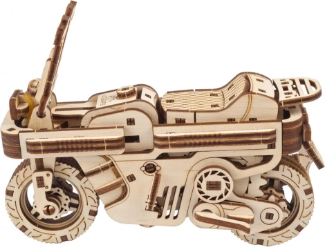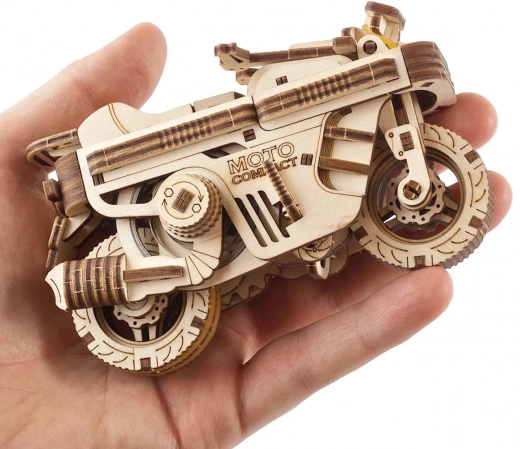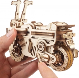 UGEARS’ foldbare scooter er et smart træmekanisk byggesæt, der forener sjov, teknik og design. Takket være den gennemtænkte kompakte konstruktion kan du nemt klappe de følsomme dele sammen og tage modellen med dig – for eksempel i rygsækkens lomme. Optræksdrevet med metalfjeder klarer op til 2 meter på én opt rækning.