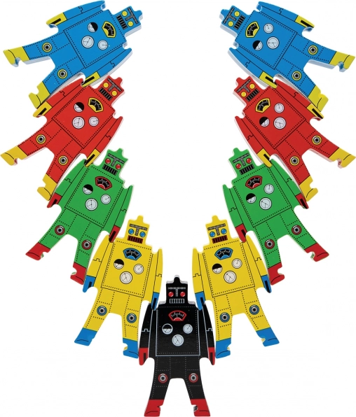 Sjov balanceringsleg med trærobotter, der udvikler finmotorik, tålmodighed og logisk tænkning. Ni farverige robotter kan stables på utallige måder – test din kreativitet og balance ved at bygge originale konstruktioner af sikre, giftfri materialer.