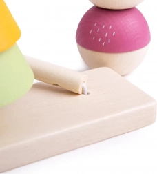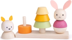 Opdag det charmerende stabellegetøj i certificeret FSC-træ, som kombinerer en ræv, en kanin og et træ. Understøtter finmotorik, hånd–øje-koordination og genkendelse af farver og størrelser. Takket være fleksible stænger med elastisk snor er legetøjet sikkert og bøjeligt, har glatte kanter og er malet med ikke‑giftige farver.