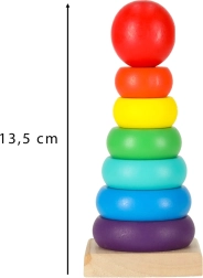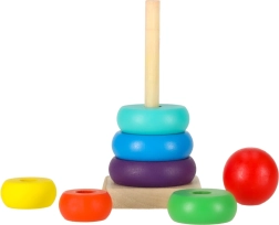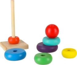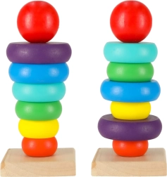 Trælegetøj, kendt for deres enkle design, styrker børns kreativitet og intellektuelle udvikling. Farverigt stabeltårn tilbyder ikke kun underholdning, men også fremmer logisk og kreativ tænkning. At placere ringe på pinden forbedrer motorikken og hjælper med at lære farver.