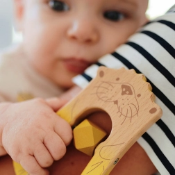 Let at gribe og den bløde klak vil fange dit barns opmærksomhed, mens bideringen hjælper med at lindre ved tandfrembrud.