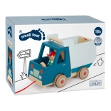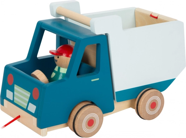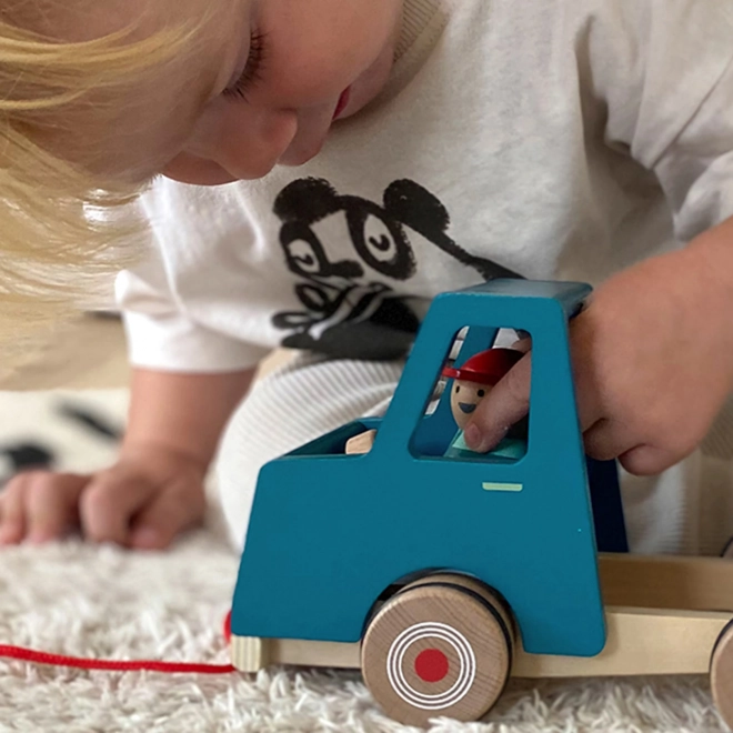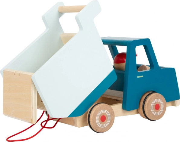 Denne moderne tipvogn i træ er det perfekte legetøj til små bygmestre. Den har et lad, der kan vippes helt, og en chauffør, der gynger under kørslen, hvilket giver ekstra sjov. Med gummibelagte hjul bevæger den sig stille og glidende.