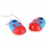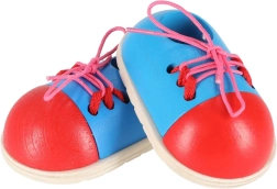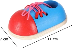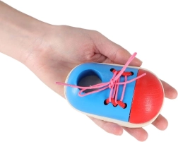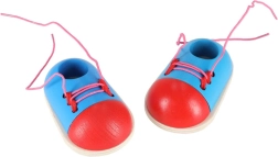 Træ-sko til at øve snørebånd er det ideelle pædagogiske legetøj til førskolebørn. De hjælper børn trygt med at øve korrekt gennemtrækning og knytning af knob på en sjov måde. Solidt træ sikrer lang holdbarhed og stabilitet under legen.