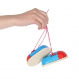 En sjov og praktisk hjælp til børn, der lærer at binde snørebånd. To kompakte træ-sko udvikler finmotorik, logisk tænkning og selvstændighed. Takket være den robuste trækonstruktion og de små mål egner de sig perfekt både hjemme og på farten.