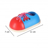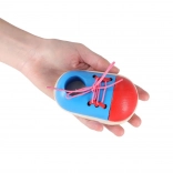 Sættet indeholder to sko og et par snørebånd, så barnet kan øve forskellige måder at binde på. Takket være de kompakte mål er det nemt at opbevare og også perfekt til rejser.